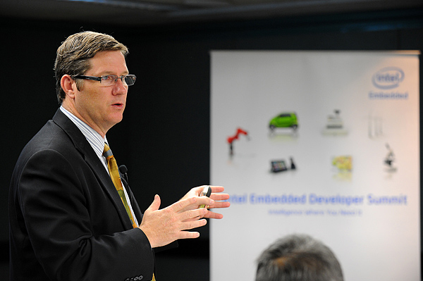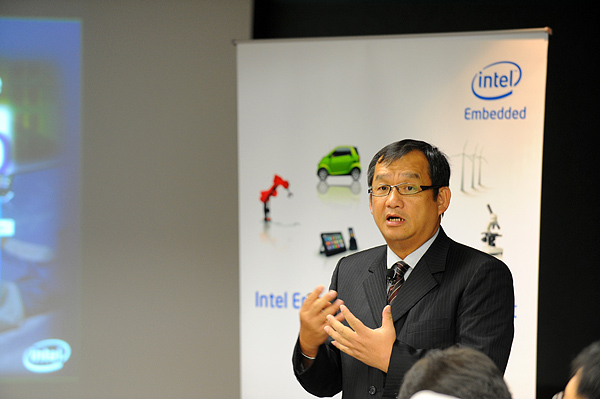 Posted on 2010-10-21 by c4news 英特爾嵌入式產業論壇 「英特爾嵌入式產業論壇」展示無所不在的嵌入式技術應用 英特爾亞太區嵌入式產品事業群暨微型移動裝置事業群執行總監陳武宏說明激發新世代嵌入式產品成長動能的各類型嵌入式應用市場現況。 英特爾資料中心事業群儲存事業部總經理David Tuhy說明儲存市場成長狀況。 透過電視上方鏡頭可辨識使用者手部動作,作為遊戲、數位電子看板等嵌入式應用。 家中成員可分別操作車用資訊娛樂,依需求選取路況、車況資訊、導航與娛樂等不同應用。 公車上的多卡辨識系統將來可辨識多種內建RFID的卡片,讀取卡片餘額並扣款。