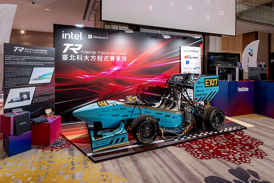 ↑ 臺北科技大學學生方程式賽車隊於現場分享如何透過 Lenovo WorkStation P620,可有效率的分析、模擬、修正車體在不同環境下的速度表現。